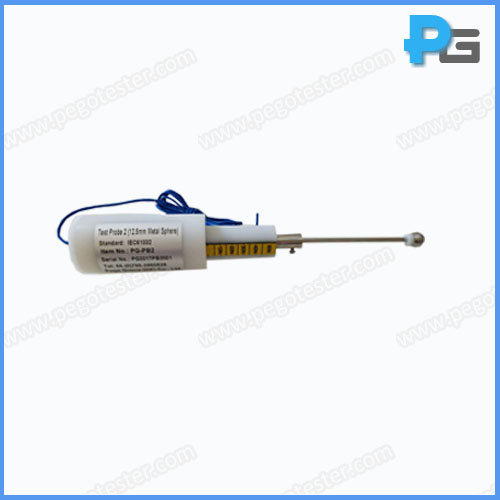 Test probe 2 (15g test sphere) is designed according to IEC61032 figure 6, meet the requirement of IEC60529-IP2. The diameter of sphere is 12.5+0.2. It is a IP code probe to verify the grade IP20, means the protection against solid foreign objects of Φ12.5mm or greater.
